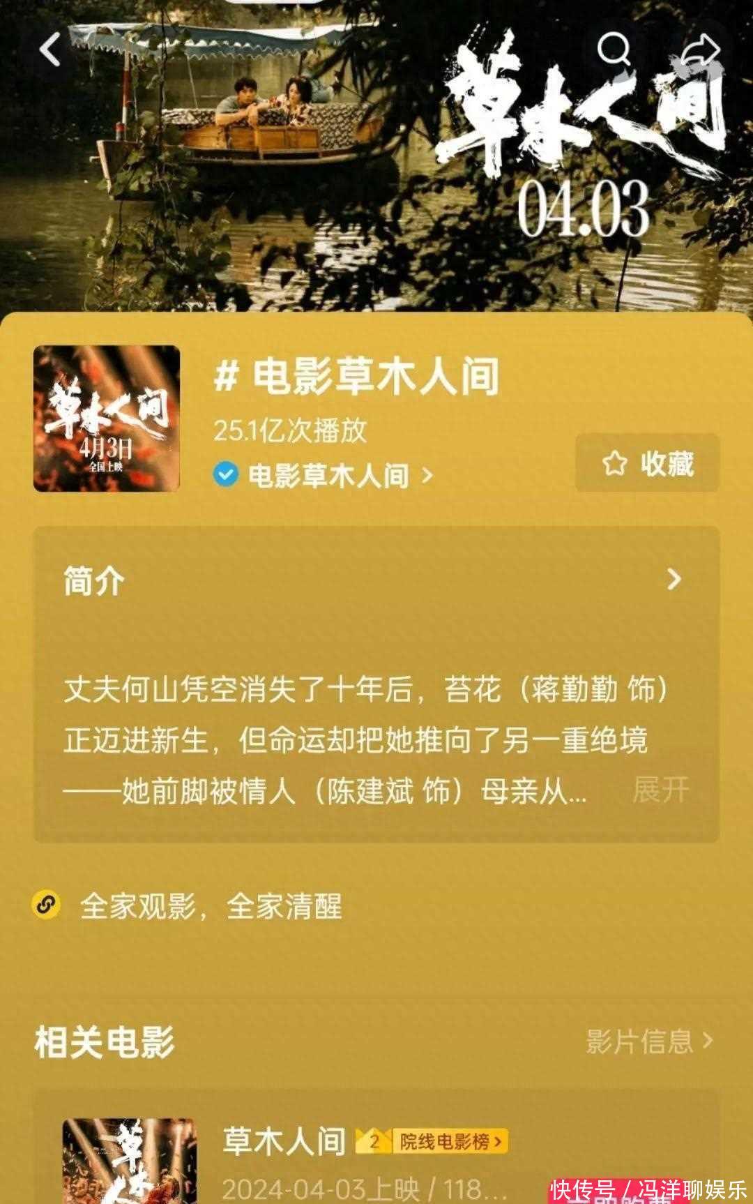 凭证抖音话题数据泄露,《草木东说念主间》的播放量高达25.1亿,热度榜近亿,单条视频点赞量更是破损了150万,这些数据无疑解释了该片的一定知名度。