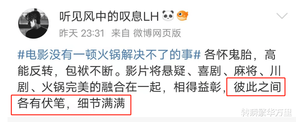 当作一部犯罪笑剧电影,《莫得一顿暖锅搞定不了的事》不错说是回转不时、爆笑不休,电影的前半部分预留了许多伏笔,到了后半段又对这些伏笔进行了玄妙回复,许多场地齐让东说念主有“蓝本如斯”的感叹,真的很绝。