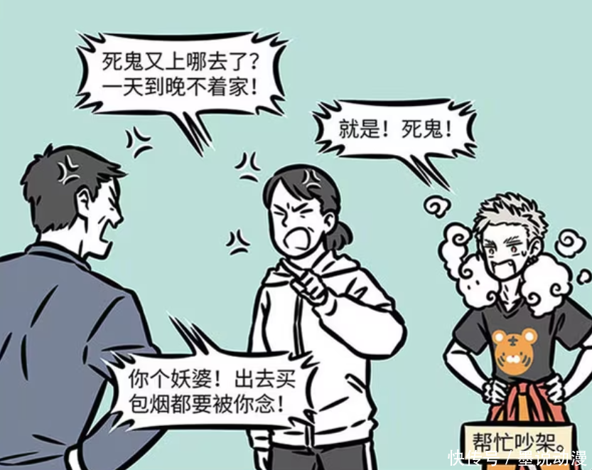 这一次是配偶吵架,女方骂男方一天到晚不着家,男方则是反驳他仅仅去买了包烟,还要被一直念。孙悟空维护吵架,看来这种事情也不太需要他维护。蓝本即是一些马浡牛溲的事情,孙悟空帮谁都不一定能起到多大的作用。