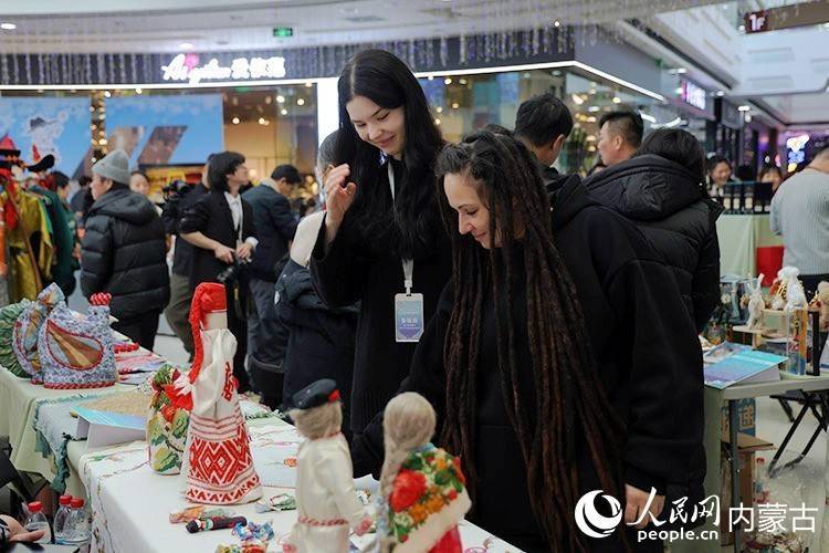第二十二届中俄蒙海外冰雪节“匠心非遗 乐享俄餐”行动现场,搭客在选购满意商品。满洲里市委宣传部供图