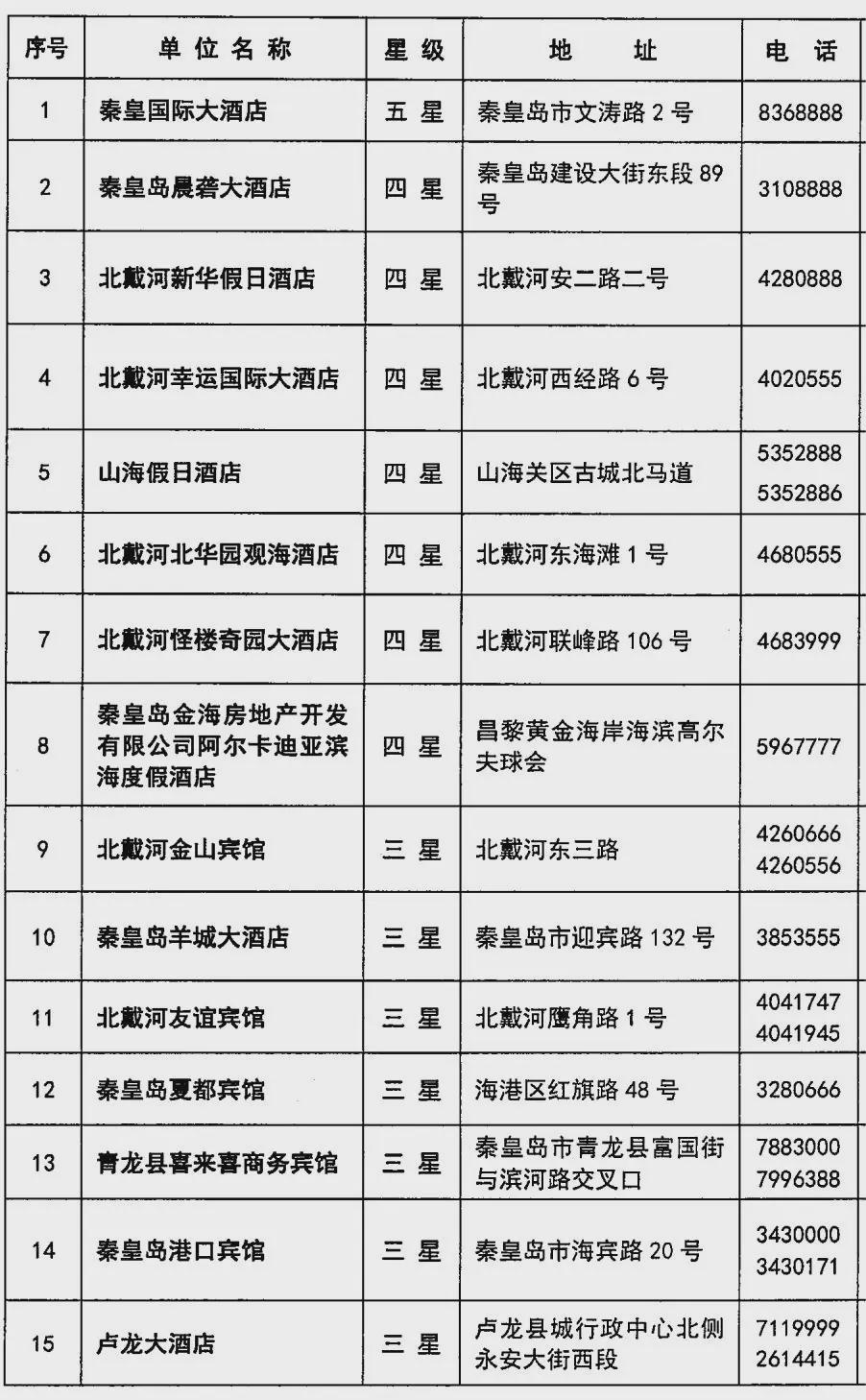 依据星级饭铺行业的关系规章,为幸免社会饭铺冒用星级饭铺进行宣传、营销,打扰星级饭铺行业形象,现将秦皇岛星级饭铺名录向社会公告。