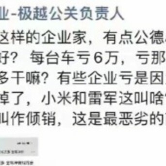 【极越公关精致东谈主:已憨厚,求放过】“极越公关精致东谈主徐继业炮轰小米亏钱卖车”的音问激励商场矜恤。其在一又友圈发文称,“小米汽车每台亏6万,亏那么多你还卖那么多干嘛?放在往时叫推销。”当宇宙午,徐继业发一又友圈称,求媒体带个话:小米公关的昆玉们,依然使出洪荒之力在裁汰这个事情的影响了,求放过。
