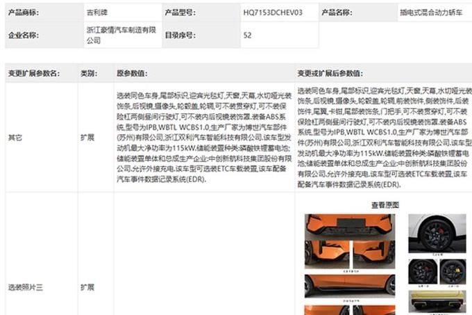 祥瑞星河新L6将赓续搭载1.5T雷神混动发动机+3挡DHT变速箱,发动机最大净功率为115kW,匹配低/高容量磷酸铁锂蓄电板,最高车速235km/h。