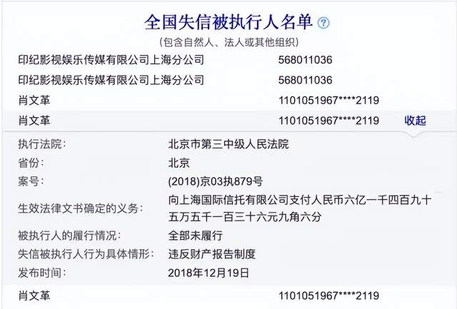 2018年7月底,因肖文革欠瑞资融资租借有限公司的借债1亿元到期没给钱,其剩余捏有的44.04%股份被大连市中院冻结。尔后,诉讼和债务误期一项接一项,肖文革所捏股份先后被四地法院冻结,股权和钱都动不昭彰。印纪传媒的两只债券“17印纪文娱CP001”“17印纪文娱MTN001”也接连误期,涉金额诡计8.74亿元。