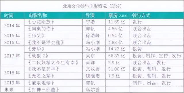 2014年,北京文化划分以13.5亿、7.5亿收购娄晓曦的世纪伙伴和王京花的银河文化,其中娄晓曦曾为华谊兄弟影视剧负责东说念主,王京花亦然金牌牙东说念主。这两家公司再加上摩天轮文化,即是北京文化利润孝敬的主力。