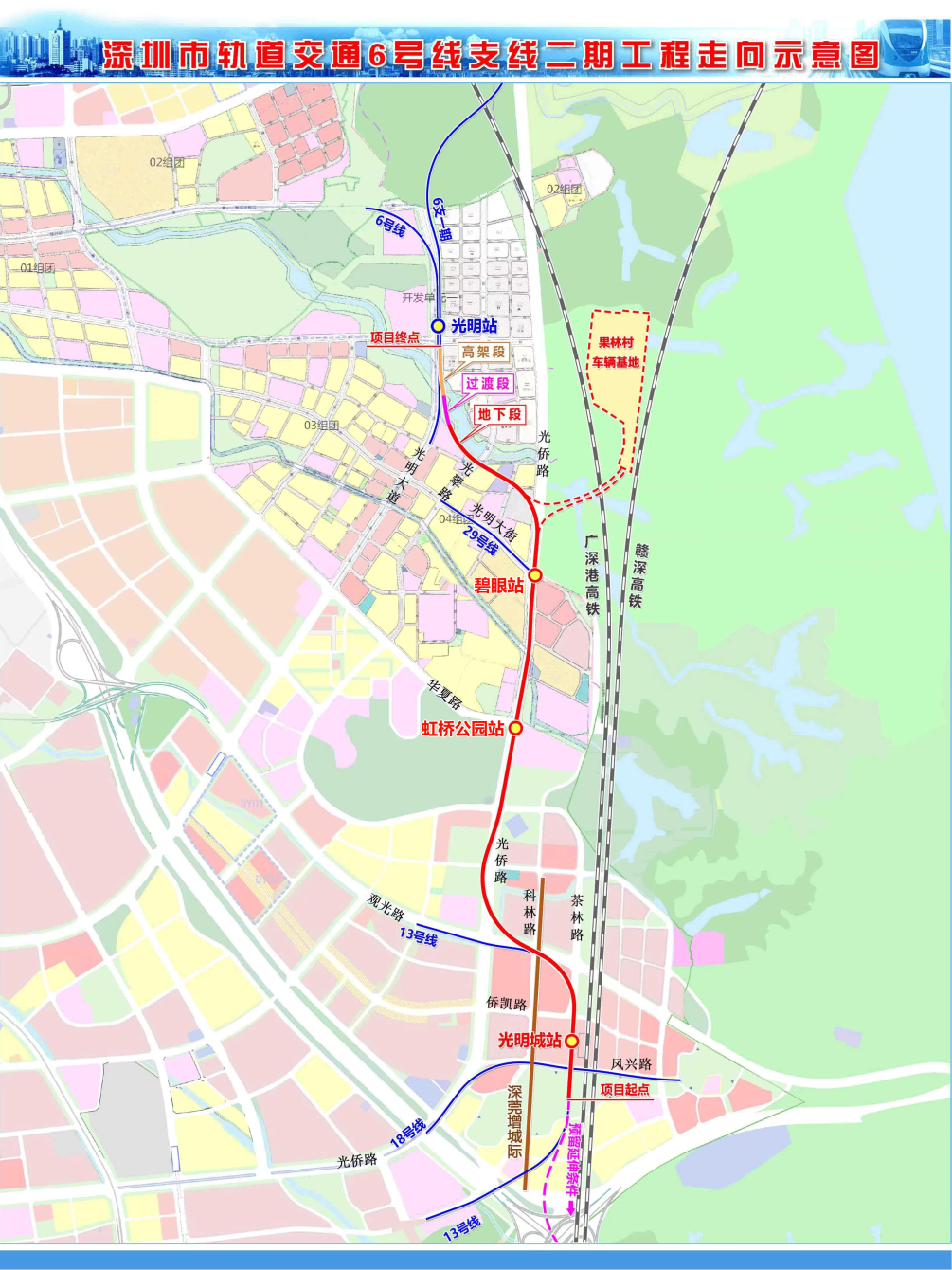 6号线支线二期工程领路全长4.96公里,南起在建的13号线光明城站,畸形北至既有6支一期光明站,共设光明城站、虹桥公园站、碧眼站三座地下车站,给与全自动无东说念主驾驶形式。