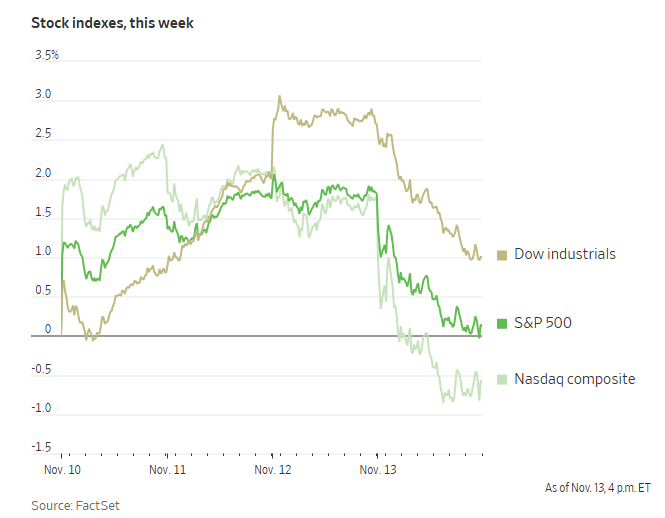 当地本事11月13日周四,好意思股三大股指在当日的交往中集体下挫,以科技股为主的纳斯达克详尽指数收盘暴跌2.29%。