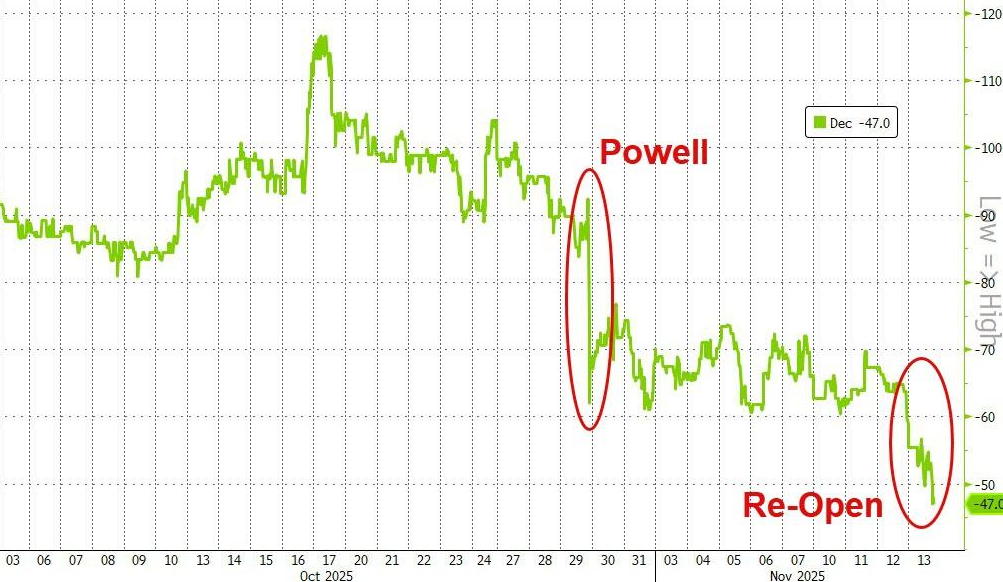 好意思国政府关门事件结束,经济数据推迟发布,投资者重估好意思联储12月降息出路,周四好意思股创一个月最大单日跌幅。