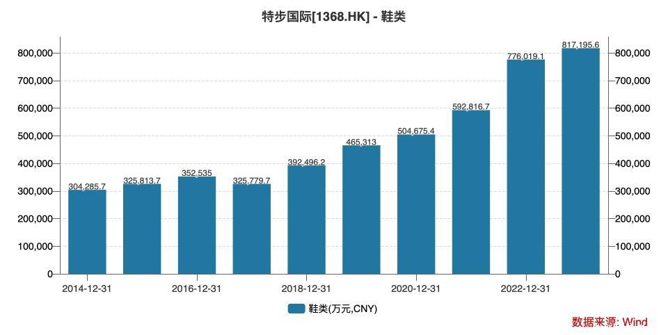 ▲近10年,特步鞋履类业务营收弘扬。
