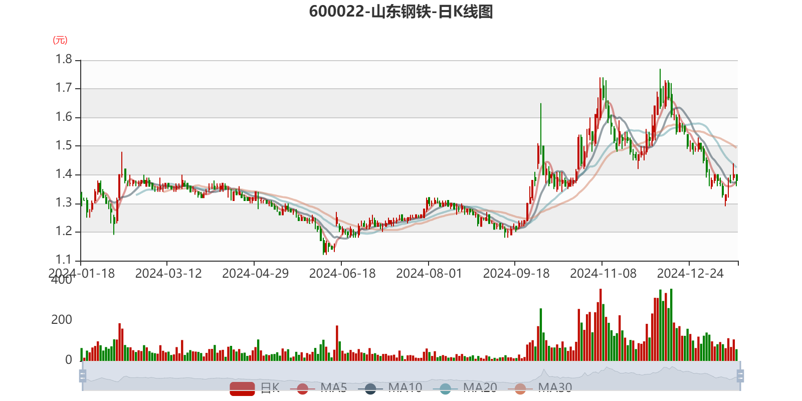 中证智能财讯山东钢铁(600022)1月17日晚间败露2024年度功绩预报,展望2024年归母净利润赔本20.5亿元至24亿元,上年同时赔本4亿元;扣非净利润赔本20.9亿元至24.4亿元,上年同时赔本6.25亿元。以1月17日收盘价筹办,山东钢铁当今市盈率(TTM)约为-6.15倍至-7.2倍,市净率(LF)约0.75倍,市销率(TTM)约0.17倍。