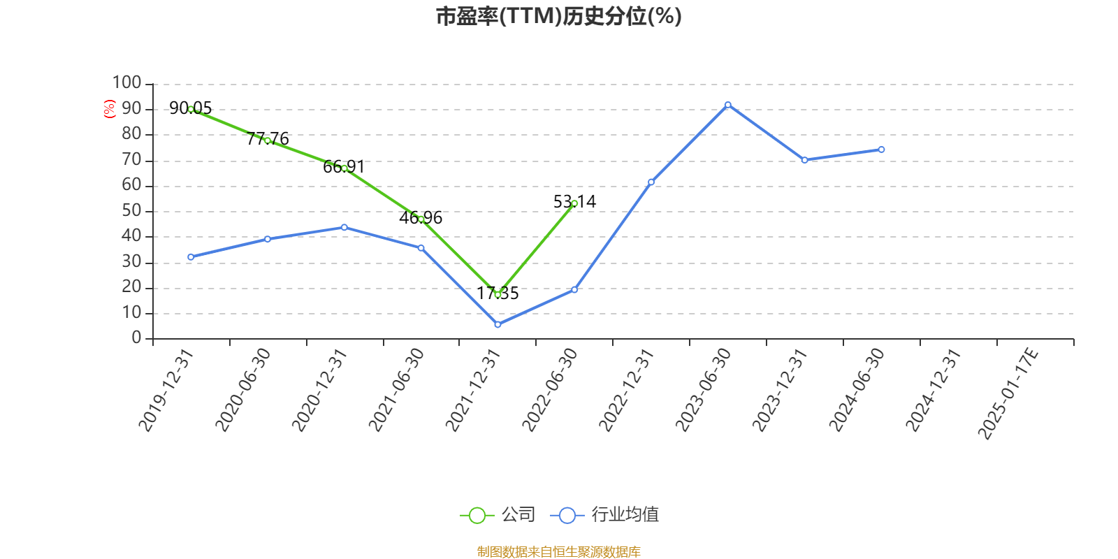 以本次败露功绩预报均值筹办,公司连年市盈率(TTM)图如下所示: