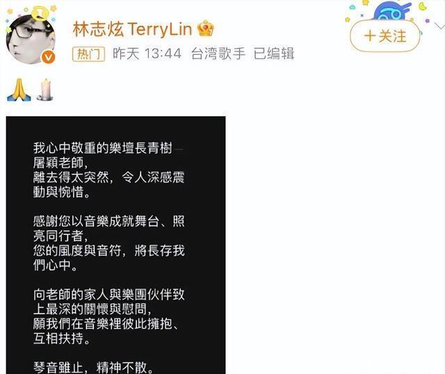 在他离世以后有许多歌手发文乱骂在,这么一位有才华的音乐以这么的花样启动真实是音乐圈的一个大亏损, 从刘若英的发文不错看得出对方对她的匡助很大,也看得出关于这个音讯她是不敢深信的,如今屠训导去往天堂,一起走好!