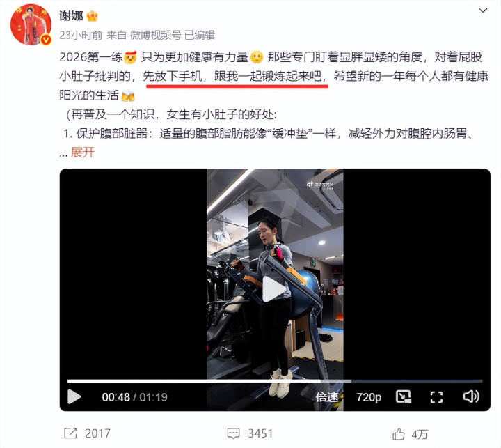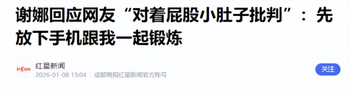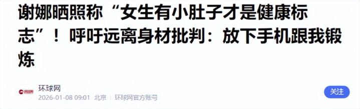 谢娜晒照称“女生有小肚子才是健康秀美”!敕令辨别形体批判:放下手机跟我测验——环球网