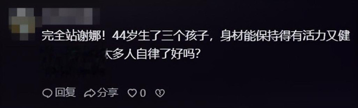 说真话,44岁生了三个娃,还能保持这么的体能,属实不易。