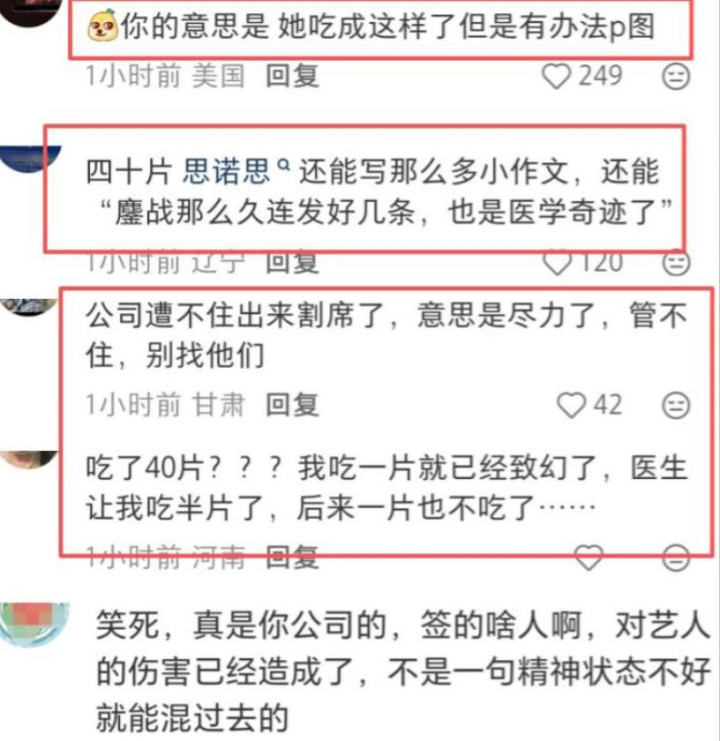 但是王大发说她吃了相当大的剂量,一顿就吃了好多天的量,这就导致了她的想想出了问题,是以才在网上说了那些话。