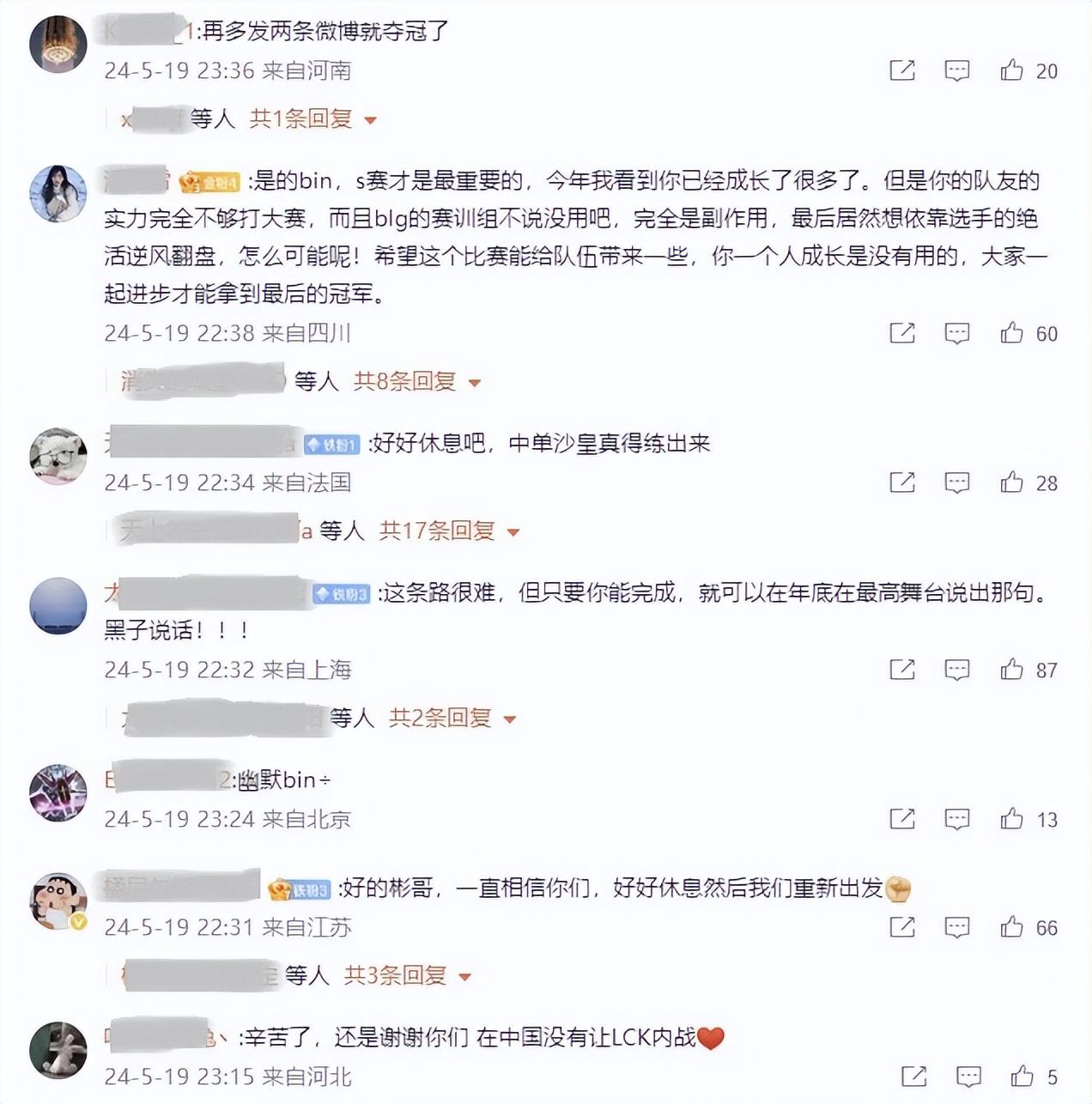 不外就算如斯,在bin发了这条微博后,一边受到粉丝的援助,一边也受到了许多质疑。粉丝们齐暗示投诚bin,S赛如实是最伏击的,况兼本年MSI也要感谢bin,莫得让LCK内战出当今决赛舞台中。而质疑bin的则是嘲讽他:再多发2条微博就夺冠了。天然还有粉丝暗示Bin的队友需要加强实力,knight需要加多英杰池。