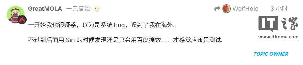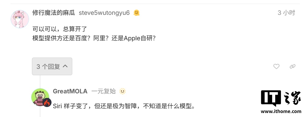 阐明博主的实测,他使用 Siri 搜索东西时会列出搜狐、百度、微博等笃定页,且跳转笃定也有百度。按照他的说法,天然他的 Siri 神色变了,但还是“极为智障”,不知说念使用的是什么模子,且只会使用百度搜索,因此他才以为这是小界限测试的征兆。