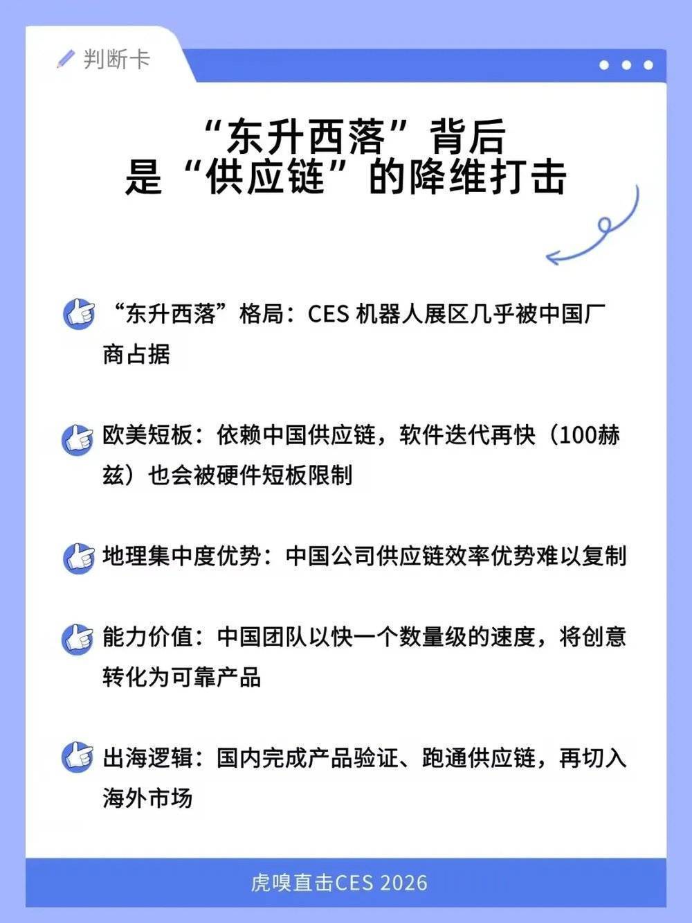 在相通与现场探展中,一个共鸣越来越澄清:泡沫在拖沓、机器东说念主在变小、中国供应链的上风(所谓“东升西落”)愈发突显。