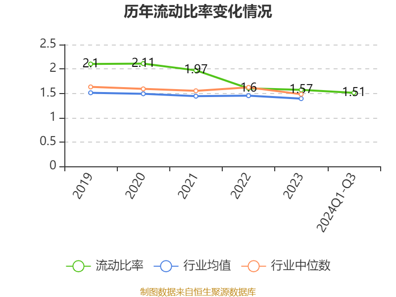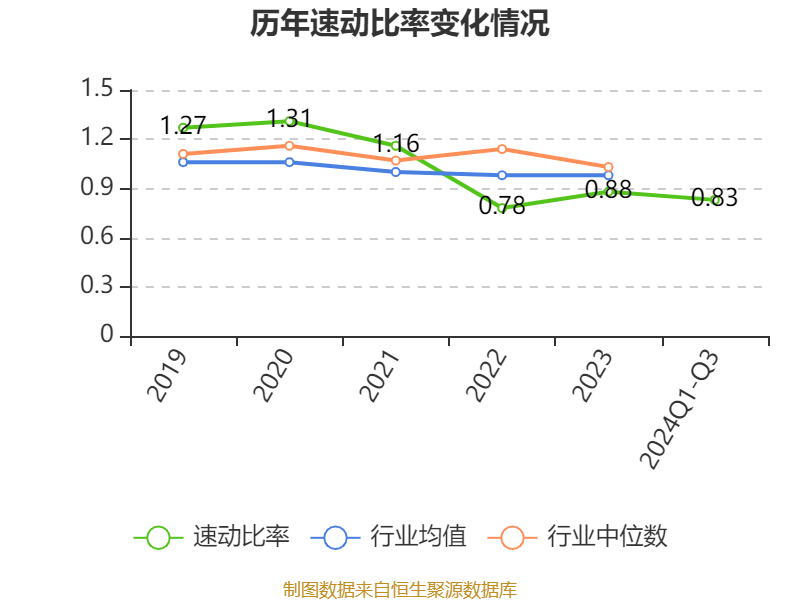 2024年前三季度,公司流动比率为1.51,速动比率为0.83。