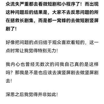 各人都在怀恨当今的不雅众不爱看长剧集了,不雅众流失严重都去看微短剧和小表率了!而出现这种问题后的成果是,各人不去反念念问题的场所转圜长剧集,而是都一窝风的去作念短剧竖屏剧了!